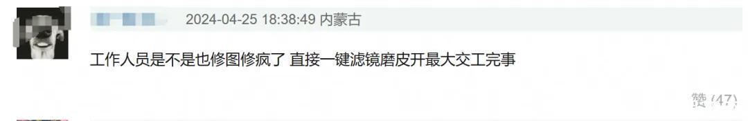 有网友吐槽是不是责任主谈主员修图修轻浮了,浑沌交工了事。